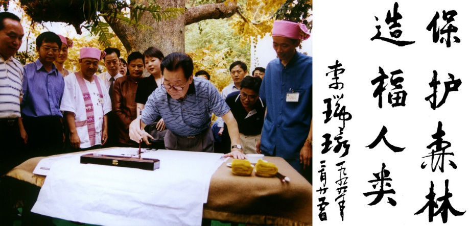 1999年3月,時(shí)任中共中央政治局常委、全國(guó)政協(xié)主席李瑞環(huán)到西雙版納森林公園參觀視察,并欣然題詞:“保護(hù)森林,造福人類”。