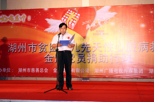6月28日上午,金洲集團(tuán)全體共產(chǎn)黨員齊聚金洲管道楊家埠園區(qū),為救治湖州市貧困少兒先天性心臟病患者舉行了現(xiàn)場捐助儀式。湖州市慈善總會(huì)會(huì)長沈榮林、金洲集團(tuán)董事長俞錦方、湖州廣播電視總臺臺長吳寶宏、湖州市中心醫(yī)院院長周國順等領(lǐng)導(dǎo)出席儀式并發(fā)表講話。