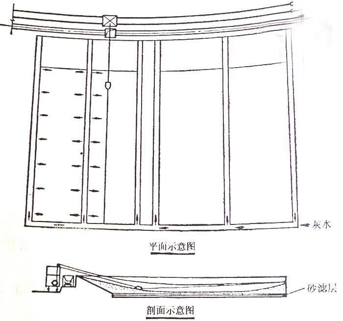 這種沉灰池的構造與前述第一種靜態(tài)脫水池相仿,其計算公式可參照上節(jié)內(nèi)容。