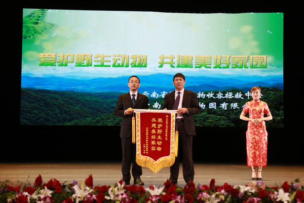 云南省林業(yè)部門(mén)授予云南湄公河集團(tuán)“愛(ài)護(hù)野生動(dòng)物,共建美好家園”錦旗